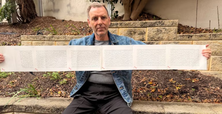 劳伦斯·沃特金斯展示自己长达6页纸的名字。图源:美媒